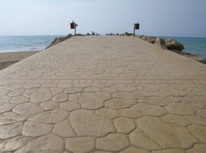 Printbeton, ook wel stempelbeton genoemd, is beton dat allerlei natuursteen zoals leisteen, flagstones, baksteen of zelfs hout imiteert. Het is ideaal voor het verfraaien van zwembaden, een oprit, een prieel of patio. Printbeton is de perfecte bestrating !